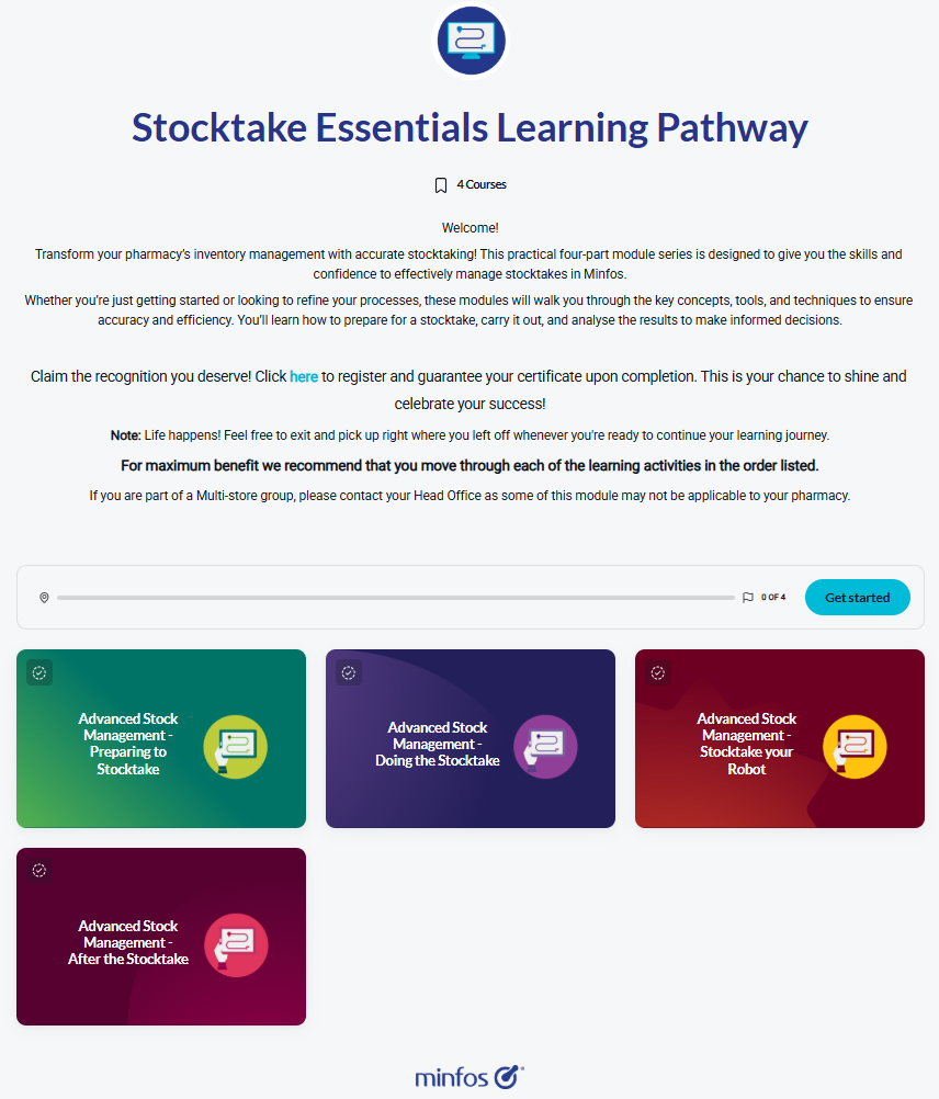 - Preparing to Stocktake – Like most things, preparation is key to a successful and stress-free stocktake. This module will cover the tasks that you need to consider and complete prior to counting your stock